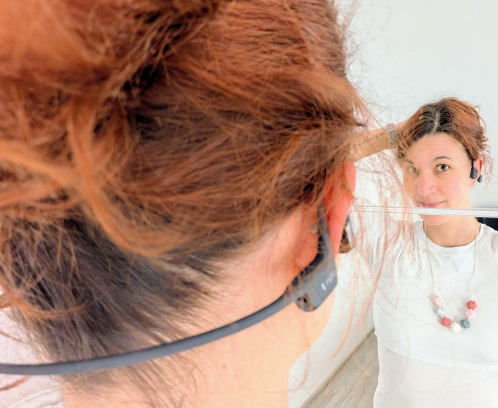 Eines der wichtigsten Kriterien ist für mich, dass Kopfhörer angenehm sitzen und auch bei intensiveren Einheiten gut halten. Beim ersten Anprobieren der Shokz OpenRun Pro 2 fällt mir auf, dass der Bügel ein bisschen weiter ausfällt als beim Vorgängermodell. Ich habe allerdings im Webshop gesehen, dass es auch noch eine kleinere Variante gibt.